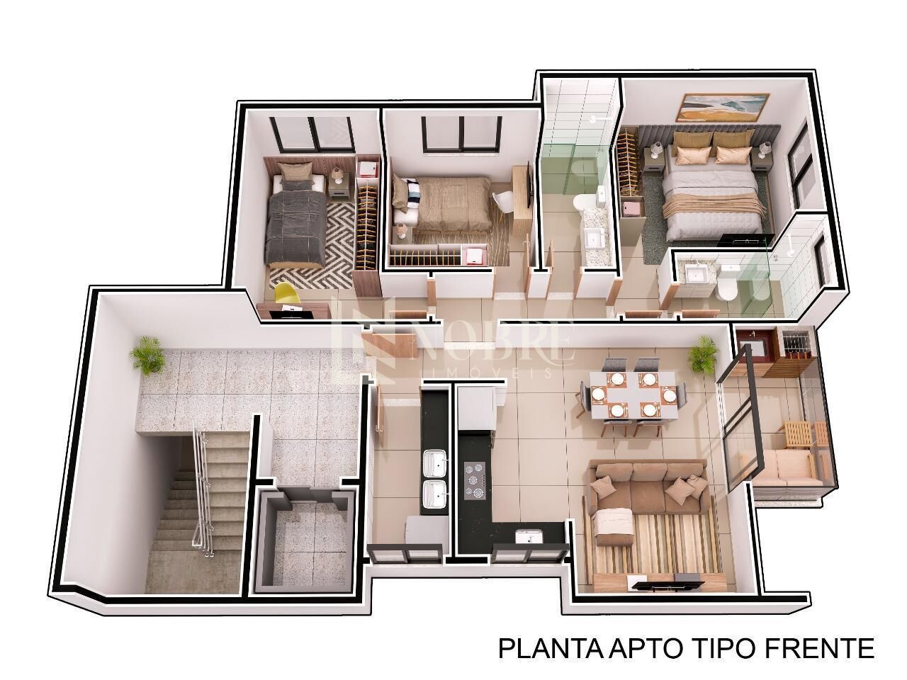 - 3 quartos, sendo 1 suíte;
